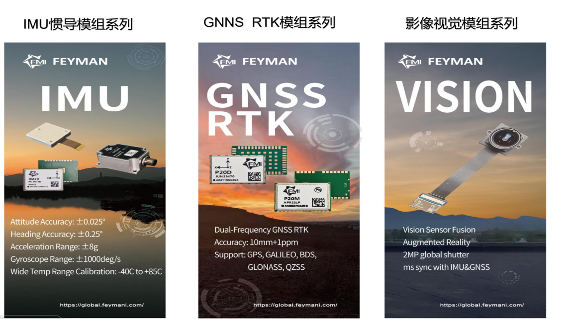 本次展会中,FEYMAN携三大核心产品解决方案及多项前瞻性技术原型亮相,展台上IMU惯导模块及激光影像视觉模组吸引了大量国内外同行的兴趣,所有参展产品已经大批量广泛应用于欧美市场的交通,农业,机器人,辅助驾驶等行业,展现中国“智造”的全球竞争力
