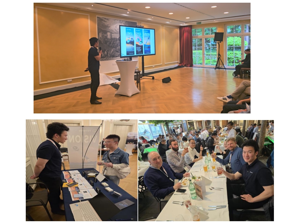 展会第二日在举办方进行的国际惯性传感器与系统场景应用对接专题活动上,来自全球领军企业的行业“大咖”,围绕智能传感器产业进行场景机会发布,共同探讨产业高质量发展的新路径,FEYMAN欧洲区VP Dr.Klose博士与美国区同事JP受邀上台发表演讲,向在场来宾(包括Honeywell,Trimble,Bosch等大厂的诸多大拿工程师Fellow)介绍了行业领先的0.02°高精度组合导航模组IM19的制造工艺、创新成果和应用实践,以及公司近期发展动态。